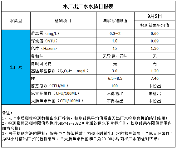 水厂出厂水水质日报表(2025-9-2)