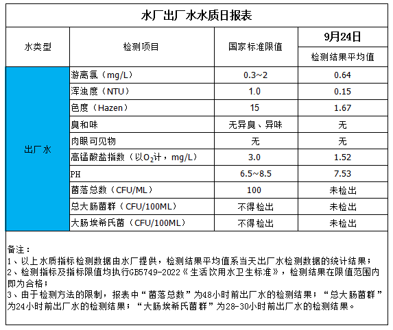 水厂出厂水水质日报表(2025-9-24)