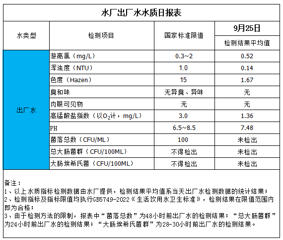 水厂出厂水水质日报表(2025-9-25)
