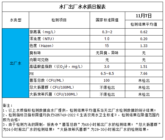 水厂出厂水水质日报表(2025-11-7)