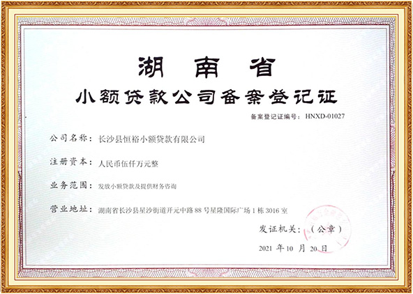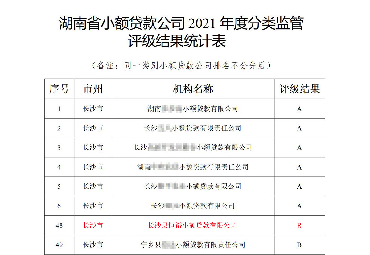 长沙县恒裕小额贷款有限公司于2012年3月29日设立,经营范围主要为家电批发零售流动贷款;国家政策允许的农村家电消费贷款;“三农”和中小企业需求的金融业务;为中小企业发展、管理、财务等咨询业务及其他经批准的业务。多年来,一直被湖南省金融办监管评级为B级资质单位。
